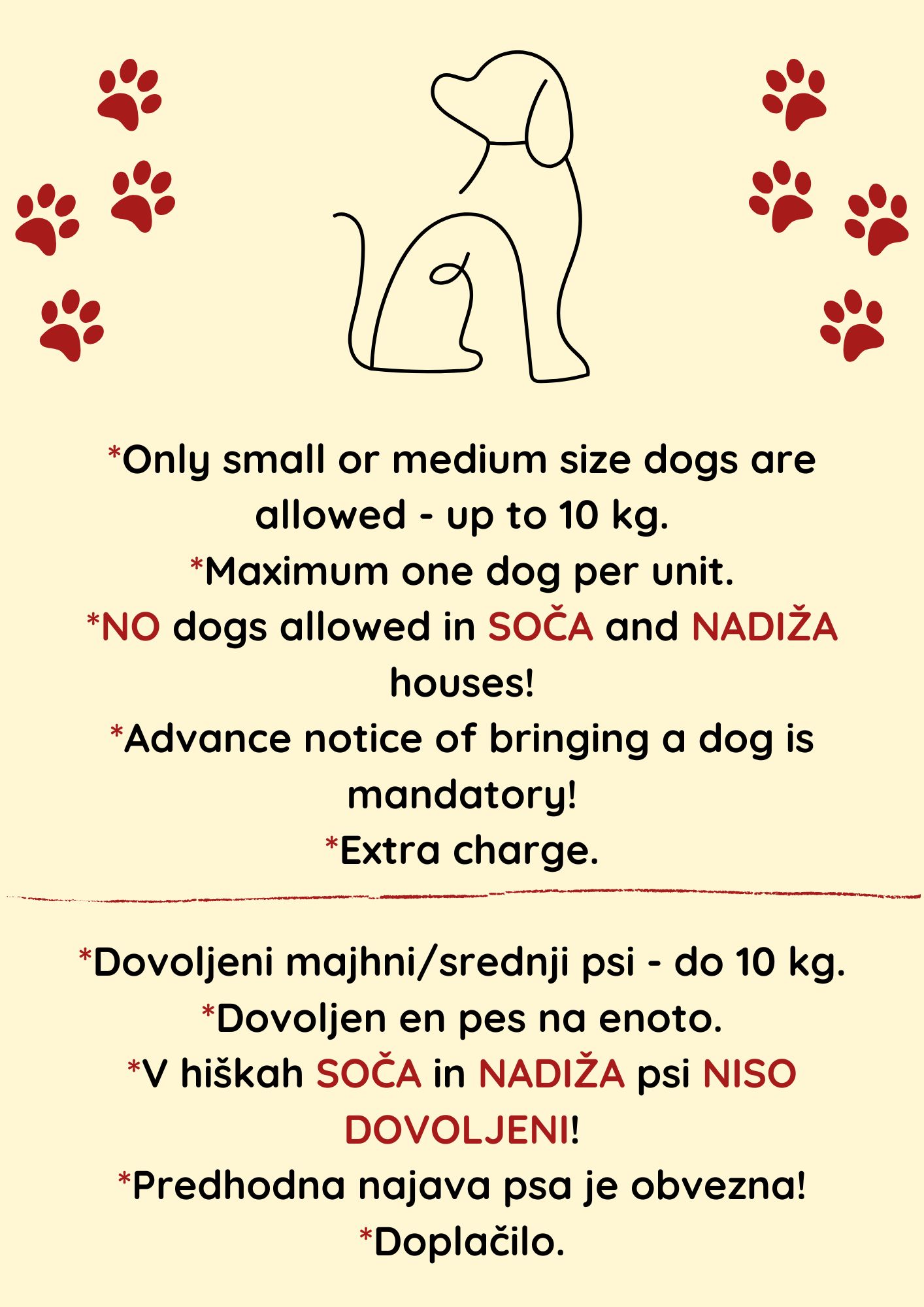 I cani di piccola e media taglia (max 10 kg) sono ammessi su richiesta. Potrebbero essere applicate delle commissioni.